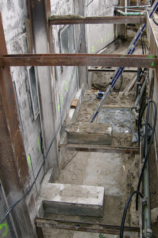 - Planung von Rückbau und denkmalgerechter Wiederherstellung der vorgesetzten Treppen und Schächte in WU-Qualität.